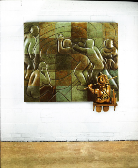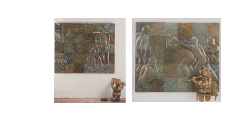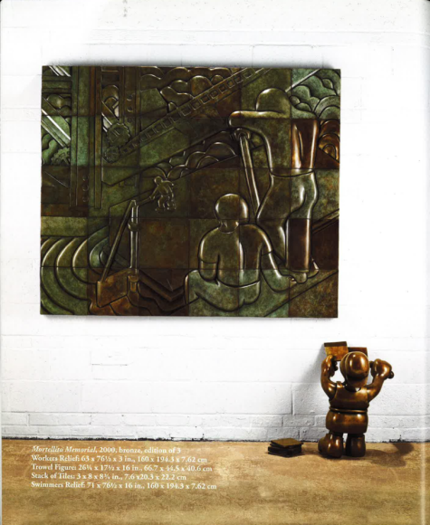 Swimmers: 71 x 76.5 x 16 in. (w/. painter figure) Workers: 63.5 x 76.5 x 3 in. Trowel figure: 26.25 x 17.5 x 21.5"