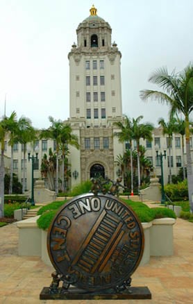 Beverly Hills, CA -- Eight bronze sculptures, majestic in size and humorous in spirit, were recently installed on the green lawns fronting Beverly Hills City Hall. The works, by famed international artist Tom Otterness, appeared suddenly during the last week of October and will be officially “unveiled” at a ribbon-cutting ceremony on November 15, 2005. The eight sculptures, entitled Tom Otterness in Beverly Hills, made the trek from a five-mile stretch of New York City’s Broadway (Tom Otterness on Broadway), to Indianapolis (Tom Otterness in Indianapolis ) and have landed on the west lawn of Beverly Hill's City Hall at 450 North Crescent Drive and Santa Monica Boulevard. Tom Otterness in Beverly Hills, will run through April 30, 2006.