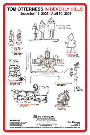 Tom Otterness in Beverly Hills is sponsored by The Beverly Hills Fine Art Commission, the Beverly Hills City Council and the Office of the Mayor with additional support of the Broad Art Foundation, the Marlborough Gallery, Inc. N.Y., N.Y. and the artist, Tom Otterness. The Beverly Hills Fine Art Commission is responsible for enhancing the beauty of the Beverly Hills through the installation of public art.