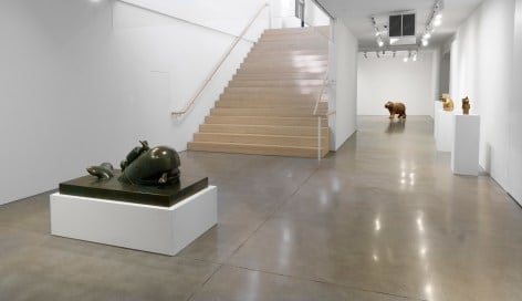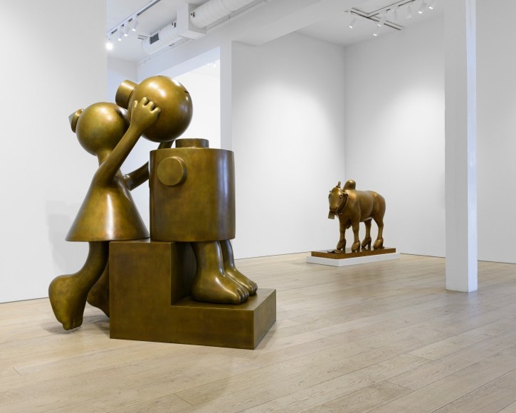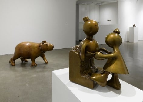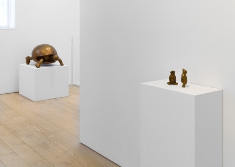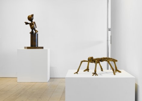 Tom Otterness, an iconic American sculptor, is celebrated for his bronze figures that animate public spaces throughout the world. His career began in 1978, when he became a member of Collaborative Projects, a pioneering community of independent artists in New York City, and he has since focused much of his work on site-specific projects. Otterness’s public works are highly recognizable and widely appreciated, such as his popular 2004 multi figure sculptural installation Life Underground for New York Metropolitan Transportation at the 14th Street Union Square subway station. Otterness’s spirited creatures generate moments of pause in busy urban life, allowing each passersby experiences of levity and satire while going about their daily lives. Otterness employs the lost-wax process to create his cast metal figures, ranging from palm-sized to monumental. His characters relay witty commentary and discerning truths on social matters, human emotions, and fabled idioms. This exhibition presents a survey of Otterness’s sculptures from 1999 to 2022, including personified animals and humanoid figures, some of which simply serve to lighten the viewer’s mood with a smile, while others tackle themes of economic disparity and political injustice.